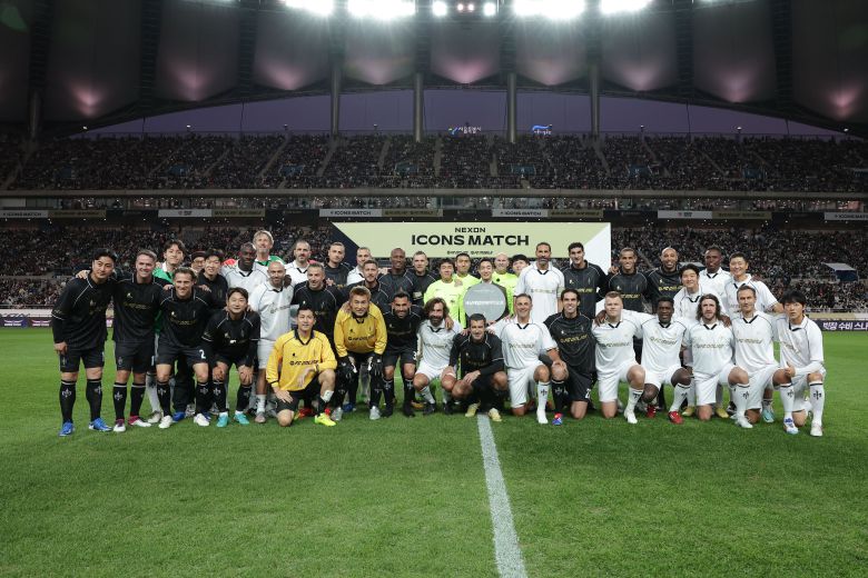 20일 넥슨 아이콘 매치에 참가한 선수들이 기념 사진을 찍고 있다. /넥슨 |
