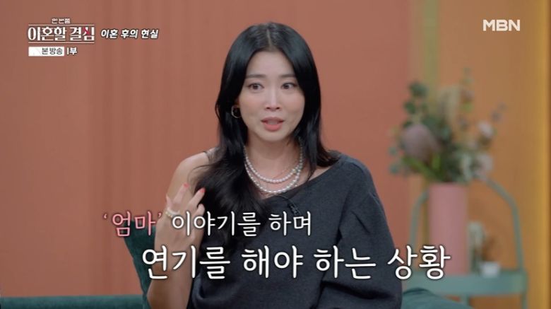 이어 "저 같은 경우에는 방송 일을 하다 보니 얼굴에서 너무 티가 나더라. (전남편과) 되게 관계가 안 좋았을 때였는데 광고 촬영을 하러 갔다. 커리어우먼을 연기해야 했다. 대사하면서 밝게 배우들끼리 이야기하는 신이었다. 제 대사가 저희 엄마 이야기를 재밌게 해야 하는 신이었는데 엄마 얘기를 하는 순간부터 눈물이 나기 시작하더라. 같이 앞에 계신 선배님이 너무 당황하고 놀랐던 경험이 있다"라고 털어놨다.