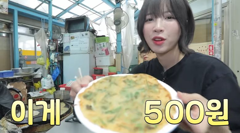 쯔양은 500원 부침개 먹방을 하기 시작했다. 이곳의 부침개는 23년 전부터 1장당 500원의 가격을 유지하고 있었다. 파, 깻잎, 배추, 고추, 부추 등이 들어가 고소하면서도 쫀득한 식감이 일품이었다.