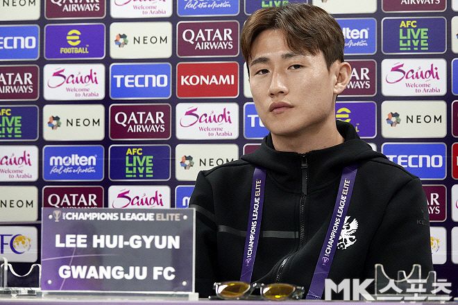이희균은 21일 진행된 사전 기자회견에 이정효 감독과 같은 선글라스를 끼고 등장했다.