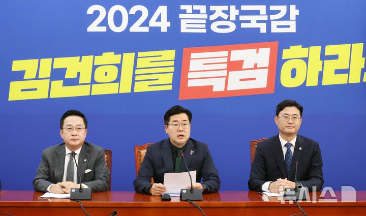 [서울=뉴시스]조재완 김지은 김경록 기자 = 더불어민주당은 24일 윤석열 대통령에 내달 4일 예정된 내년도 예산안 시정연설 참석을 촉구했다. 또 한동훈 국민의힘 대표에는 여당의 '김건희 특검법안'을 요구했다.