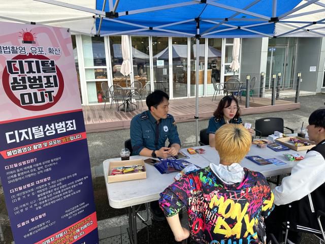 강원 춘천경찰서 관계자들이 지난달 26일 춘천 한림대에서 디지털 성범죄 처벌 규정 및 대처 요령을 설명하고 있다. 춘천=연합뉴스
