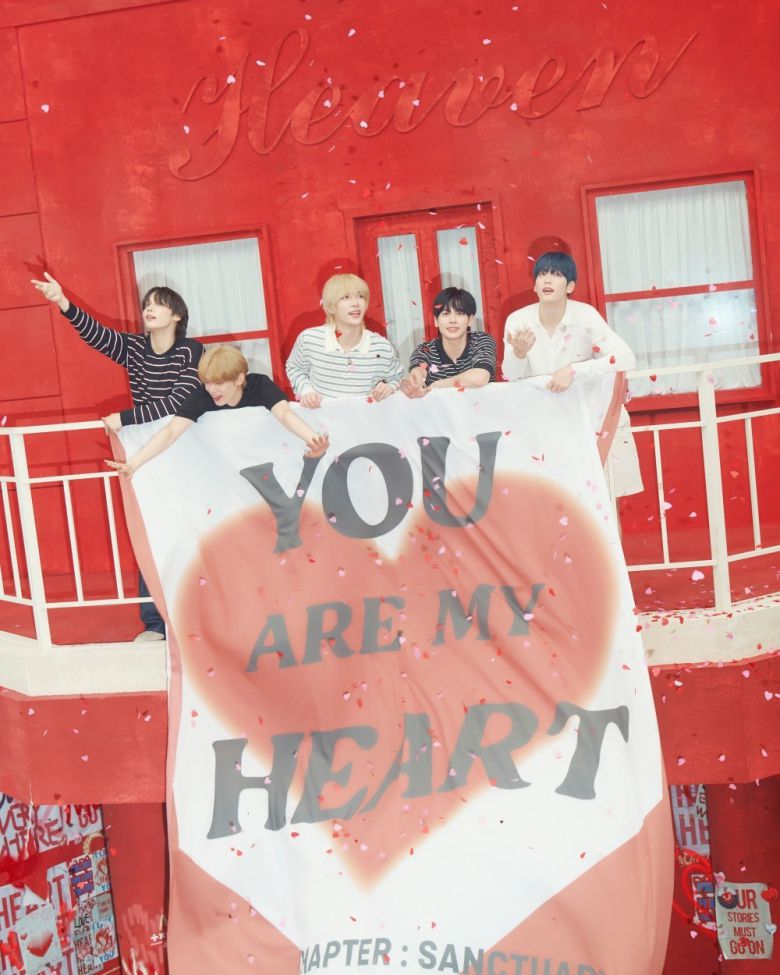 '별의 장 : 생크추어리'는 다시 만난 너를 통해 경험한 마법 같은 순간, 그로 인해 달라진 세상에 대해 다룬다. 투바투 멤버들은 이를 사랑으로 표현한다.