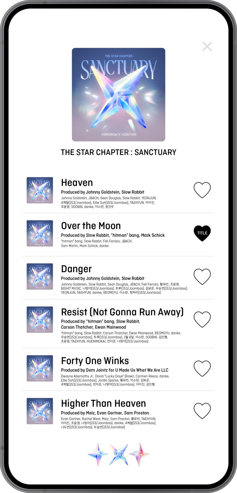 빅히트 뮤직은 26일 공식 SNS에 투바투의 미니 7집 '별의 장 : 생크추어리'(SANCTUARY) 트랙리스트 이미지를 공개했다. 앨범 분위기를 스포일러했다.