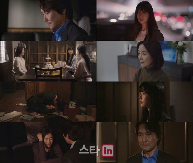집으로 돌아온 태수는 스스로를 자책하며 회한의 눈물을 흘렸다. 그런 태수의 앞에 하빈이 섰다. 태수는 “전부 엄마 때문이었니? 이제부터 네가 하는 말 전부 믿을게”라고 말했지만, 하빈은 “못해. 아빠 못 믿는다고”라며 차갑게 바라봤다. 그리고 “엄마 죽던 날 왜 만났어? 엄마랑 같이 있었잖아. 숨길 수 있을 줄 알았어?”라며 폭탄 같은 말을 던졌다. 이어 과거 제정신이 아닌 지수에게 “죽고 싶으면 죽어. 왜 못 하겠어?”라고 몰아붙이던 태수의 모습이 교차돼 충격을 안겼다. 얼어붙은 태수의 모습이 또 한 번 충격 엔딩을 완성하며, 그날 무슨 일이 있었는지 궁금증을 증폭시켰다.