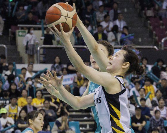 KB는 27일 경기도 부천체육관에서 열린 2024~25시즌 여자농구 정규리그 개막전에서 홈팀 부천 하나은행을 64-56으로 완파했다. KB는 지난 시즌까지 수퍼스타 센터 박지수를 앞세워 골 밑을 공략하던 팀이었다.