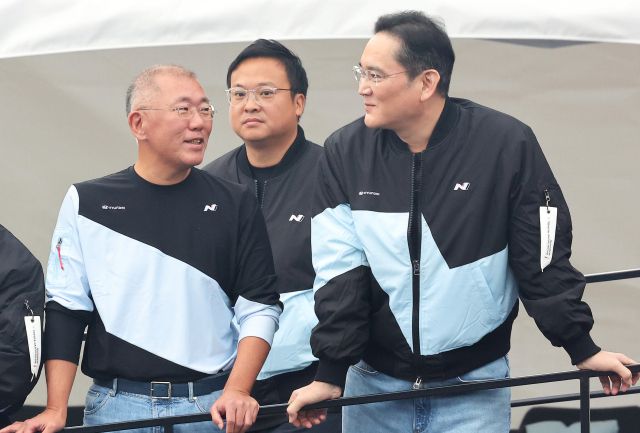 재계에 따르면 이 회장은 이날 경기도 용인시 에버랜드 스피드웨이에서 열린 ‘현대 N x 도요타 가주 레이싱(Hyundai N x TOYOTA GAZOO Racing) 페스티벌’을 찾았다. 이 자리에는 조현범 한국앤컴퍼니그룹 회장도 함께했다.