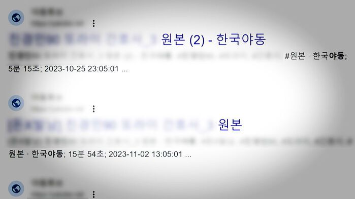 원본, 한국 야동이란 제목이 붙은 영상들이 노출됩니다.