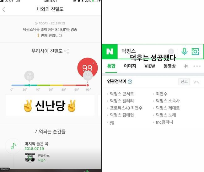 이 외에도 딕펑스 연관검색어에 자신의 이름이 걸려있거나, ‘복면가왕’에 딕펑스 김태현이 나왔을 당시 집에서 이를 보다가 벽을 쳐 새끼 손가락이 부러졌다고 밝힌 바 있을 정도로 열성팬이었다.