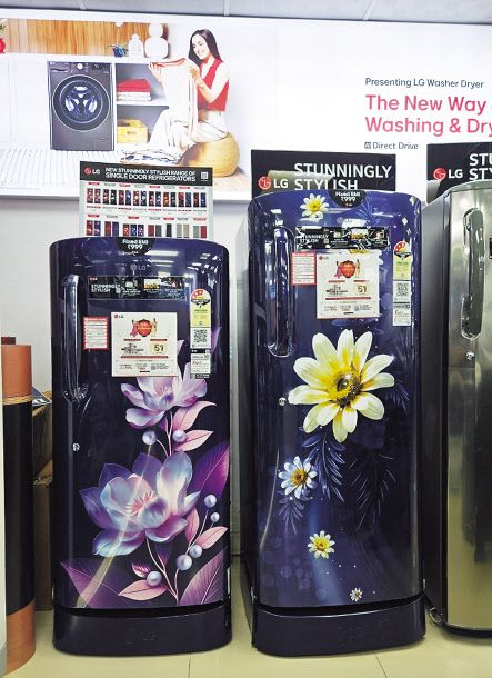 먼저 눈에 띈 제품은 꽃무늬 디자인이 적용된 냉장고였다. LG전자는 인도 소비자가 꽃무늬 패턴을 좋아한다는 점에 착안에 제품 전체를 화려한 꽃 이미지로 장식한 싱글도어 냉장고를 출시해 흥행몰이에 성공했다.