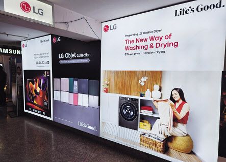 제품별로 다양한 상품들이 매장 곳곳을 빈 곳 없이 채우고 있었지만, 이 가운데 LG전자 제품이 차지하는 비중이 압도적으로 높은 것을 확인할 수 있었다. LG 제품들은 주로 방문객의 눈길이 가장 먼저 닿을 수 있는 메인 구역에 배치됐다. 매장 입구와 2층과 3층을 잇는 계단 벽면에도 LG전자 광고 이미지가 가득했다.