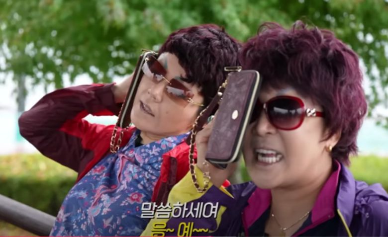 67세 박복실 여사로 분한 한가인(왼쪽)과 유튜버 랄랄. [한가인 인스타그램 갈무리] |