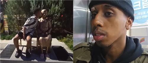 미국 국적의 유튜버 조니 소말리가 평화의 소녀상에 입을 맞추는 모습. 사진 조니 소말리 유튜브 영상 캡처