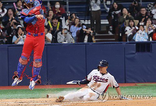 김도영(KIA 타이거즈)의 뜬공이 쿠바 2루수 글러브에 맞고 떨어졌고, 그 사이 3루 주자 홍창기가 홈을 밟았다.