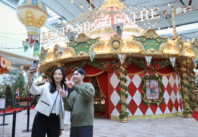 알록달록한 조명과 웅장한 음악, 성탄절 장식으로 크리스마스 분위기가 물씬 느껴지는 이 곳은 현대백화점이 연말을 맞이해 꾸민 ‘움직이는 대극장(LE GRAND THEATRE)’이다. 작년에 이어 2년 연속 ‘인증샷 명소’로 불릴만한 연말 연출 행사를 준비한 것이다.