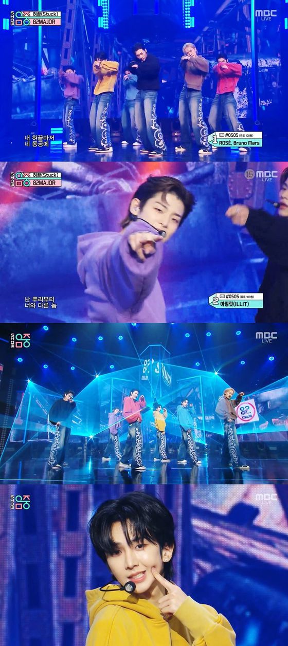 이날 82메이저는 후드 티셔츠에 청바지를 매치한 스포티한 의상을 입고 카메라 앞에 등장했다. 팀워크가 돋보이는 단체 안무로 무대의 포문을 연 멤버들은 강렬한 랩과 보컬을 선보이며 스테이지를 단숨에 사로잡았다.