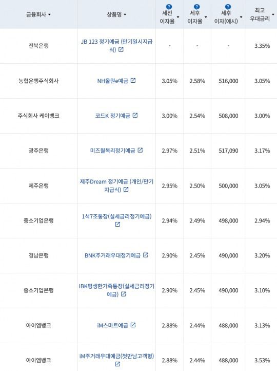 제주은행 ‘제주드림(Dream) 정기예금’과 기업은행 ‘1석7조통장(실세금리정기예금)’의 금리는 각각 연 2.95%, 2.94%다.
