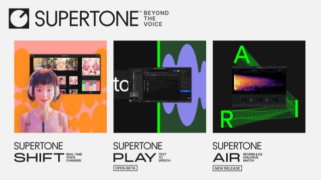 아울러 수퍼톤은 이달 1일 음향 전문가를 겨냥한 서비스 ‘수퍼톤 에어’도 선보였다. 이 서비스는 특정 오디오 콘텐츠가 녹음된 장소의 울림이나 반사음 등을 추출하고, 이를 다른 오디오에 적용해 해당 공간의 음향을 재현하는 오디오 플러그인이다. 수퍼톤은 수퍼톤 에어를 통해 포스트 프로덕션 엔지니어들이 간편하게 공간 음향을 구현하고, 오디오 후반 작업의 편의성과 효율성을 높일 것으로 기대하고 있다.