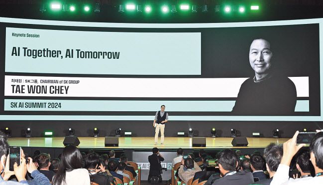 이에 따라 SK가 매년 진행했던 테크 서밋을 올해 AI 중심의 대규모 글로벌 행사인 ‘SK AI 서밋’으로 확장했다. 그레그 브로크만 오픈AI 회장 겸 사장, 라니 보카르 마이크로소프트(MS) 총괄 부사장 등이 참석했고, 사티야 나델라 MS CEO·젠슨 황 엔비디아 CEO·웨이저자 TSMC CEO 등이 영상으로 등장했다.