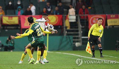 (전주=연합뉴스) 나보배 기자 = 7일 전북 전주월드컵경기장에서 열린 아시아축구연맹(AFC) 아시아챔피언스리그2(ACL2) 전북 현대와 슬랑오르FC(말레이시아)의 경기에서 전북 현대 박창우가 상대 선수를 압박하고 있다. 2024.11.7