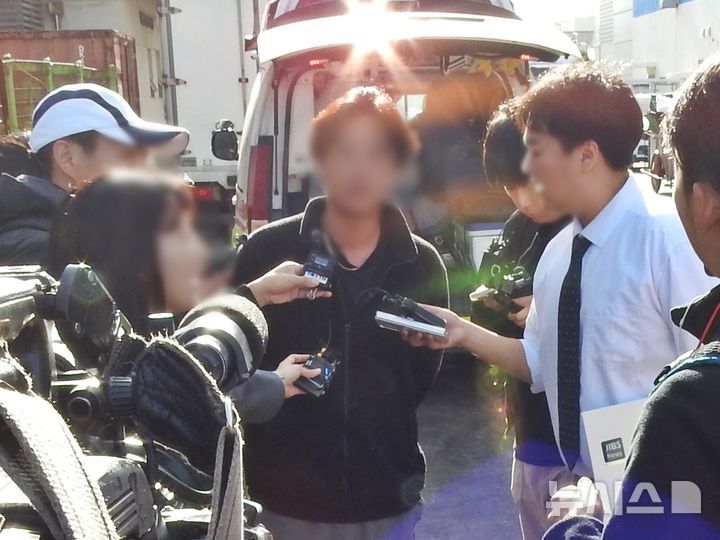 [제주=뉴시스] 오영재 기자 = 8일 오전 제주시 한림항에서 비양도 침몰 어선 구조 작업을 벌인 인근 선단 30대 선원이 당시 상황을 설명하고 있다. 2024.11.08. oyj4343@newsis.com |