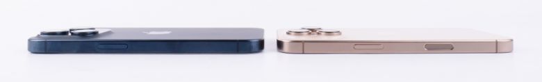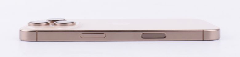 아이폰 15 프로(왼쪽)와 비교하면 왼쪽 부분은 똑같지만, 오른쪽 부분은 전원 버튼 밑에 카메라 컨트롤 버튼이 추가된 것을 확인할 수 있다.