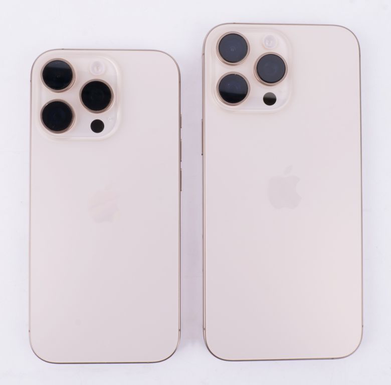 아이폰 16 프로와 아이폰 16 프로 맥스의 크기 비교.