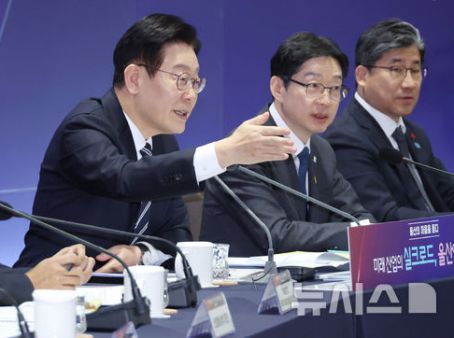 [서울=뉴스핌] 이호형 기자 = 이재명 더불어민주당 대표과 박찬대 원내 대표, 김민석 최고위원 9일 오후 서울 시청역 인근서 열린 김건희·윤석열 국정농단 규탄· 특검 촉구 제2차 국민행동의 날 행사에서 애국가 제창을 하고 있다.2024.11.09 leemario@newspim.com