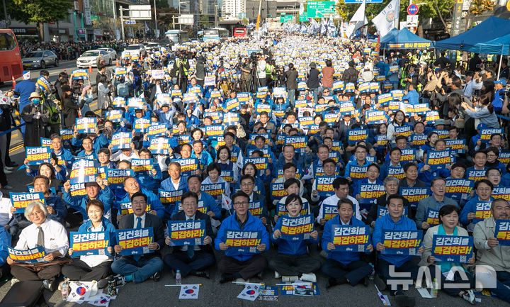 한편 민주당은 이날 집회에 20만명이 참석했다고 주장했다. 경찰은 집회 인원을 공식 집계하지 않았다. 민주당은 오는 16일에도 김건희 특검법 수용 장외 집회를 열고 '특검 수용 촉구 1000만인 서명 운동'을 이어갈 방침이다.
