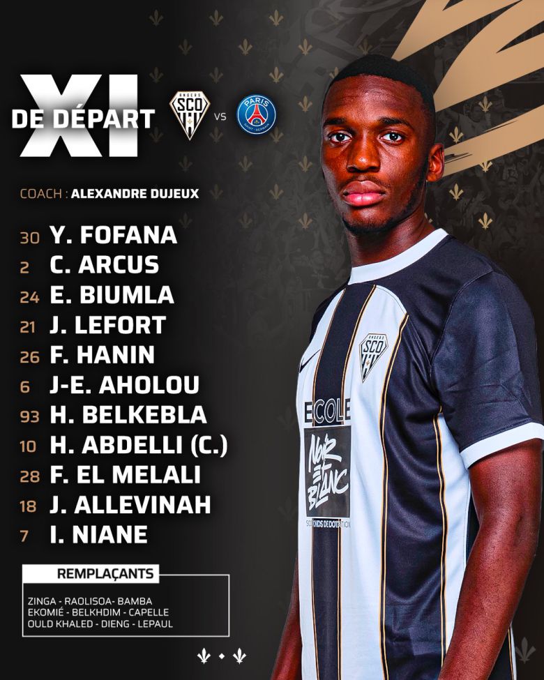 홈팀 앙제는 4-2-3-1 전형으로 나섰다. 야히야 포파나 골키퍼를 비롯해 플로랭 아냉, 조르당 르포르, 에마뉘엘 비움라, 카를렌스 아르쿠스가 수비를 구성했다. 3선에선 하리스 벨케블라, 장 아올루가 수비를 지켰다. 2선은 파리드 엘 멜랄리, 이마드 압델리, 짐 엘레비나, 최전방에 이브라히마 니아네가 출격했다.