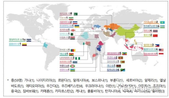 이번 교육에는 전 세계 중·저소득 27개국 59명이 참여해 메신저 리보핵산(mRNA) 백신, 바이러스 벡터 백신 등 세계적 수요가 높은 백신을 의약품 제조 및 품질관리 기준(GMP)을 준수하면서 제조하는 공정을 배울 예정이다. 교육은 글로벌바이오인력양성허브 지원재단이 총괄 주관하고, 국제백신연구소(IVI), 연세대학교 K-NIBRT 사업단 등이 운영한다.