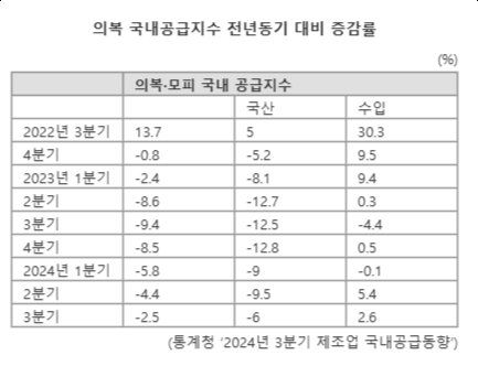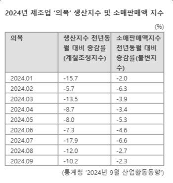 의류 국내 생산, 소비 모두 감소