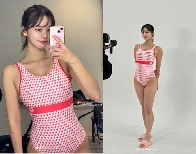 공개된 사진은 맹승지의 촬영 비하인드. 핑크색 원피스 수영복을 입은 채 다양한 포즈를 취한 맹승지는 글래머러스한 대문자 S라인 몸매를 자랑하는 모습. 귀여우면서도 섹시한 베이글의 정석을 뽐내는 맹승지의 자태가 시선을 사로잡는다.