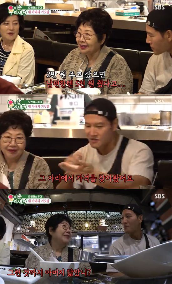 이에 김종국이 "저희 어머니는 싸게 샀다는 거짓말을 제일 많이 한다"라고 폭로(?)하자 그의 어머니는 "2만 원 주고 샀으면 남편한테는 5천 원 줬다고 한다. 그럼 싸게 샀다고 한다"라고 고백해 김종국 아버지를 충격에 빠트렸다.