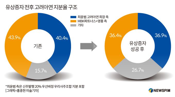 [서울=뉴스핌] 김승현 기자 = MBK 파트너스와 손잡은 영풍과 경영권 분쟁 중인 고려아연의 유상증자에 대한 업계와 시장의 반응이 더 차가워지고 있다.