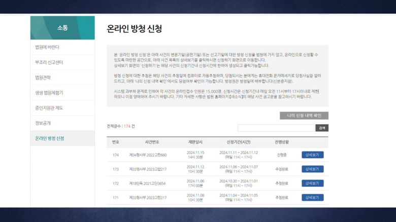 서울중앙지방법원은 오늘(11일)부터 내일까지, 홈페이지를 통해 36석의 방청권 신청을 받습니다.