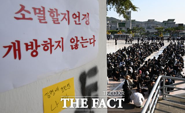 학생들은 전날 오전부터 동덕여대 본관 앞에서 남녀공학 전환을 저지하기 위한 학교 점거에 들어갔다.