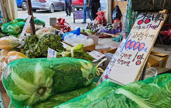하지만 최근 들어 배춧값이 하락하면서 채소가게들은 포장용 골판지 상자에 '달고 맛있는 고랭지 배추 1망에 1만원'이라고 파란색, 빨간색 네임펜으로 적어 놓고 적극적인 판매에 나서고 있었다.