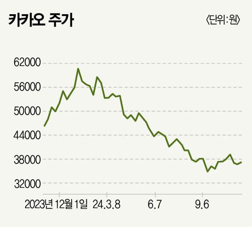 16조2111억원. 한국거래소에 집계된 11월 6일 기준 카카오 시가총액이다. 올해 초 25조7509억원에서 9조원가량 줄어들었다. 어느새 유가증권 시장(코스피) 시총 순위도 20위권 밖으로 밀렸다. 11월 6일 기준 시총 순위는 25위다. 시총 경쟁을 펼치던 네이버(11위·28조3463억원)와도 격차가 더 벌어졌다. 워낙 가파르게 시총 규모가 떨어진 탓에 어느새 게임사 크래프톤(24위·16조6453억원)에도 밀린 형국이다. 2021년 시총 3위를 노리던 카카오 위상은 찾아보기 힘들다.