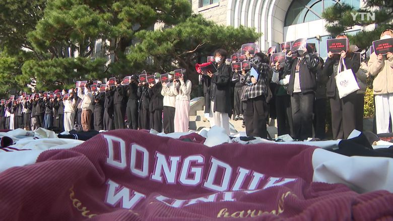 성신여대에서도 국제학부에서 남학생을 뽑는다는 소식이 알려져 점퍼를 벗어두고 근조 화환을 놓는 등 동덕여대와 비슷한 상황이 이어지고 있습니다.
