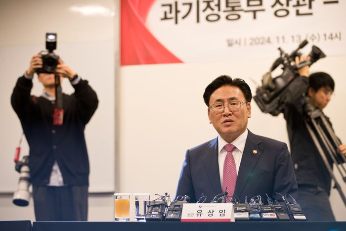 유상임 과학기술정보통신부 장관이 13일 서울 중구 대한상공회의소에서 열린 통신3사 CEO 간담회에서 통신 현안에 대해 발언하고 있다. 과학기술정보통신부 제공 |