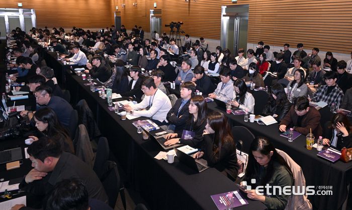 정치인에서 기업가로 변신한 윤 대표는 증권시장에서 확산하는 AI 역할을 특유의 입담으로 풀어내 호응을 얻었다. 신 과장 역시 올해 일명 '티메프 사태'로 논란이 된 PG업에 대한 구체적 법개정 논의를 다뤄 청중을 집중시켰다.