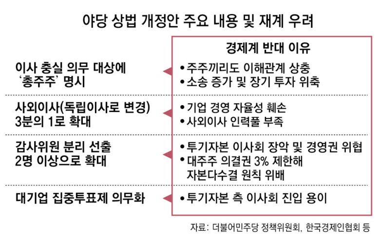 재계 “해외 투기자본 먹튀조장법… 10대 기업중 4곳 이사회 위협”