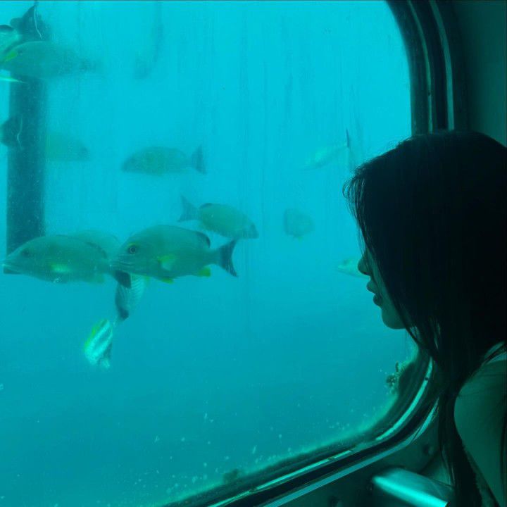 공개된 사진에서 김아영은 바닷속 물고기를 보고 놀라워하는 한편, 선상에서 선글라스를 쓰고 뒤태를 드러내며 여유로운 모습을 뽐냈다.