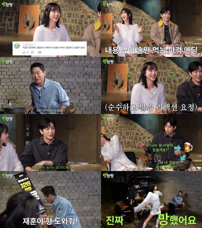 한지현이 “신나서 계속 마시다가 집에 간다”고 하자 신동엽은 “그럼 오늘 ‘짠한형’ 최초로 쫙쫙쫙쫙 하고 업로드는 13분 정도로, 내용 없이 술만 먹는 엔딩”이라고 너스레를 떨었다.