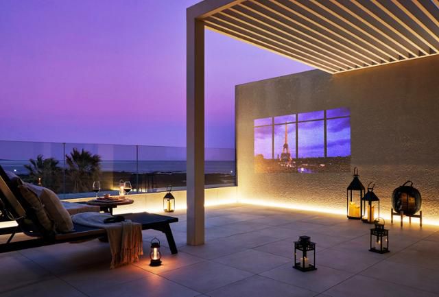 패키지에는 넓은 테라스를 보유한 ‘주니어 스위트 테라스 객실’ 1박이 포함된다. 선베드와 테이블, 의자, 야외 조명 등을 준비해 제주의 파도 소리를 들으며 쉴 수 있는 공간이다. 테라스 또는 객실에서 오붓하게 영화를 즐길 수 있도록 LG 시네빔 큐브와 고화질 빔프로젝터, 무선 헤드폰을 대여해준다. 캠핑 랜턴과 담요, 쿠션도 준비해 테라스에서 영화를 감상하며 색다른 낭만을 즐길 수 있다. 저녁에는 객실에서 와인 1병과 치즈 플래터 세트, 또는 맥주 2병과 치킨 세트 중 하나를 이용할 수 있다. 가격은 51만2,000원부터다.