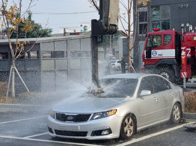 전기차 화재 진압을 위한 다른 특수장비도 동원됐다. 수압을 이용해 드릴을 가동시켜 차량 하부 배터리 셀을 뚫고 소화수를 배터리에 직접 주입하는 'EV-드릴랜스'가 차량 하부에서 화재를 진압했다. 행안부 관계자는 "현대자동차그룹과 협력사 탱크테크가 공동개발한 장치로, 올해 연말까지 소방청에 250대 를 기증할 예정"이라고 설명했다.