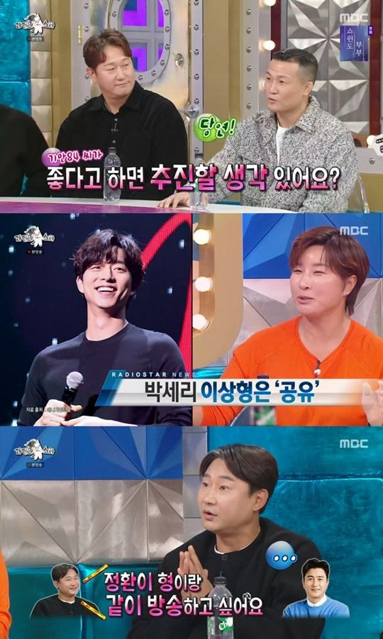 박세리는 원빈, 공유, 홍성흔 등 스타들과 런웨이에 오른 사진을 공개했다. 이중 박세리가 먼저 언급한 것은 공유와 오른 런웨이 사진이었다. 이를 김국진이 짚자 박세리는 "제 이상형이 멋지게 나이드는 사람인데 공유씨가 그런 사람인 것 같다"며 공유에 대해 호감을 드러냈다. 이어 그는 "나 또 결혼 못한다. 이러면 또 박세리 이상형 공유라고 뜨잖냐"며 걱정했다.