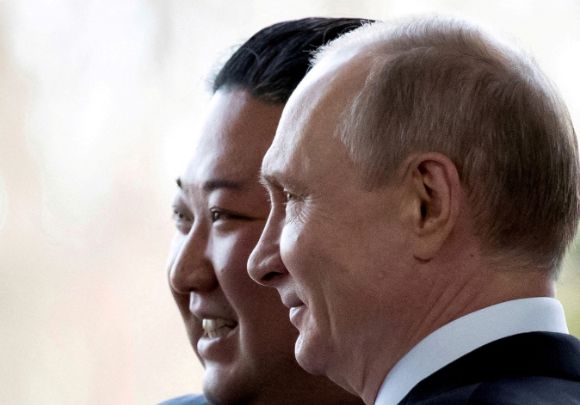 지난 2019년 4월 25일 블라디보스토크에서 열린 북러 정상회담에서 김정은(뒤)과 푸틴이 기념 촬영을 하고 있다. [사진=로이터/연합뉴스] |