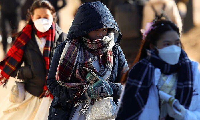 서울의 날씨가 영하권을 기록한 지난해 12월 서울 종로구 경복궁 인근에서 두꺼운 옷차림의 관광객들이 길을 지나고 있다. 연합뉴스